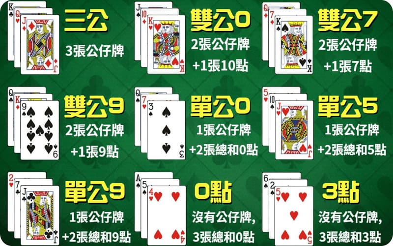 如果玩家没有形成三公牌型,则需要通过普通点数进行比较。点数计算方式为三张牌点数之和取个位数,最大为9点。